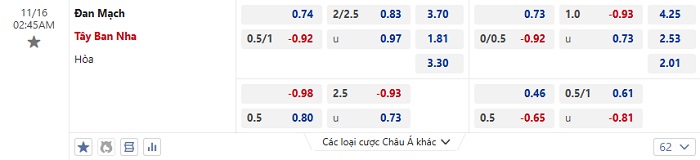 Tip kèo Châu Á full trận Đan Mạch vs Tây Ban Nha