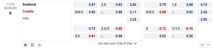 Tip kèo Châu Á full trận Scotland vs Croatia