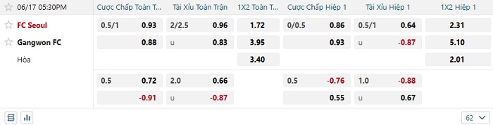 Tip kèo Châu Á hiệp 1 FC Seoul vs Gangwon