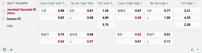 Tip kèo Châu Á hiệp 1 Jeonbuk Hyundai vs Suwon FC
