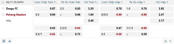 Tip kèo Châu Á hiệp 1 Daegu FC vs Pohang Steelers