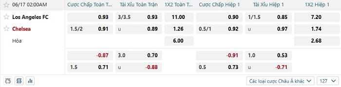 Tip kèo Châu Á hiệp 1 Los Angeles FC vs Chelsea