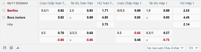 Tip kèo Châu Á full trận Benfica vs Boca Juniors