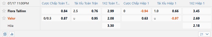 Tip kèo Châu Á full trận Flora Tallinn vs Valur