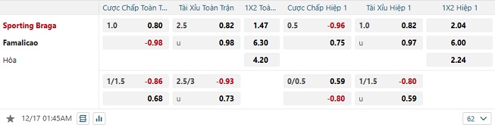 Tip kèo Châu Á full trận Sporting Braga vs Famalicao