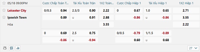 - Dự đoán tỷ số hiệp 1: Leicester 0 – 0 Ipswich