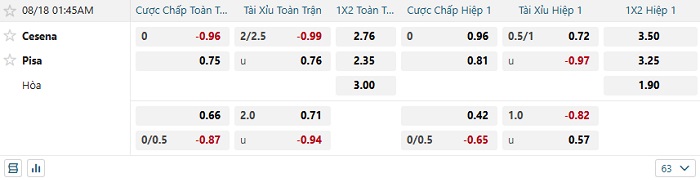 Tip kèo Châu Á full trận Cesena vs Pisa