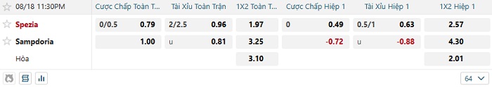 Tip kèo Châu Á hiệp 1 Spezia vs Sampdoria