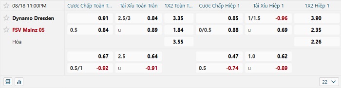 Nhận định trận đấu Dynamo Dresden vs Mainz 05: Dù đang có phong độ không thực sự tốt và còn phải làm khách, Mainz vẫn tự tin thắng kèo châu Á với sức mạnh áp đảo đối thủ. Ở mức chấp -1/2, đội khách đang là lựa chọn an toàn nhất dành cho người hâm mộ. Ngoài ra thì khi mà cả hai đều đang có lối chơi rất an toàn thì trận đấu này cũng sẽ chỉ có tối đa 2 bàn thắng.