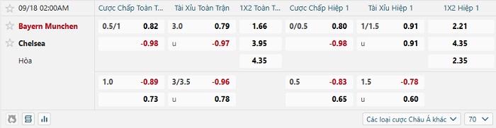 Tip kèo Châu Á full trận Bayern Munich vs Chelsea