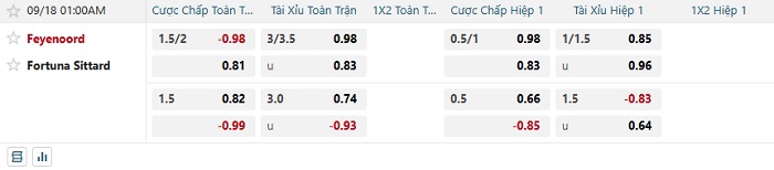 - Tip kèo cá cược Châu Á hiệp 1: Chọn Feyenoord -3/4