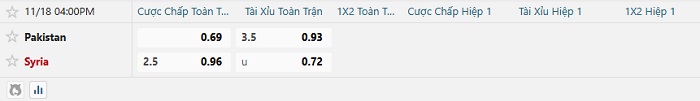Tip kèo Châu Á full trận Pakistan vs Syria
