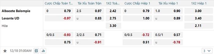 Tip kèo Châu Á hiệp 1 Albacete vs Levante