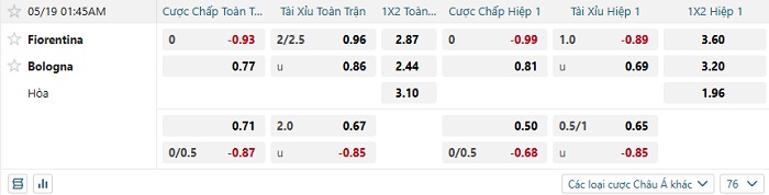 Tip kèo Châu Á full trận Fiorentina vs Bologna