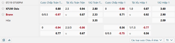 Tip kèo Châu Á full trận KFUM Oslo vs Brann