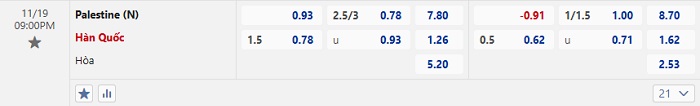 Tip kèo tỷ số Palestine vs Hàn Quốc