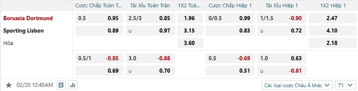 Tip kèo Châu Á full trận Dortmund vs Sporting Lisbon
