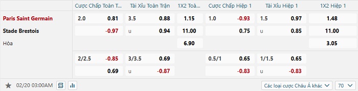 Tip kèo Châu Á full trận PSG vs Brest