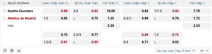 Tip kèo Châu Á hiệp 1 Seattle Sounders vs Atletico Madrid