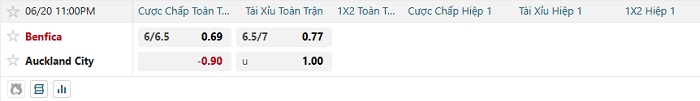 Tip kèo Châu Á full trận Benfica vs Auckland