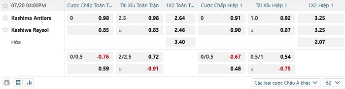 Tip kèo Châu Á hiệp 1 Kashima Anters vs Kashiwa Reysol