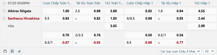 Tip kèo Châu Á full trận Albirex Niigata vs Sanfrecce Hiroshima