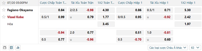 Tip kèo Châu Á full trận Fagiano Okayama vs Vissel Kobe
