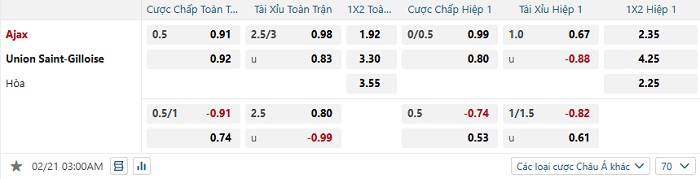 Tip kèo Châu Á full trận Ajax vs Saint Gilloise
