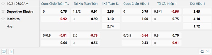 • Dự đoán tỷ số hiệp 1: Riestra 0 – 0 Instituto