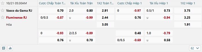Tip kèo Châu Á hiệp 1 Vasco da Gama vs Fluminense