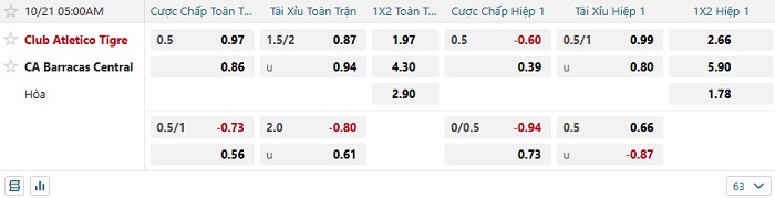 Tip kèo Châu Á full trận Club Tigre vs Barracas Central