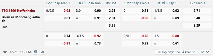 Tip kèo Châu Á full trận Hoffenheim vs Monchengladbach
