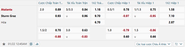 Tip kèo Châu Á full trận Atalanta vs Sturm Graz