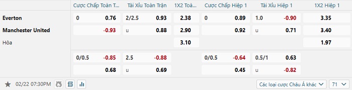 Tip kèo Châu Á full trận Everton vs Man United