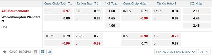 Tip kèo Châu Á full trận Bournemouth vs Wolves