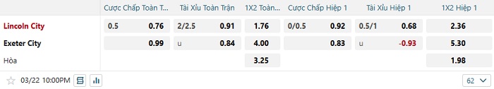 Tip kèo Châu Á hiệp 1 Lincoln City vs Exeter City