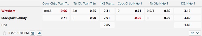 Tip kèo Châu Á hiệp 1 Wrexham vs Stockport