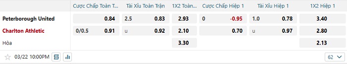 Tip kèo Châu Á hiệp 1 Peterborough vs Charlton