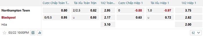 Tip kèo Châu Á hiệp 1 Northampton vs Blackpool