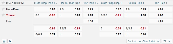 Tip kèo Châu Á hiệp 1 Ham Kam vs Tromso