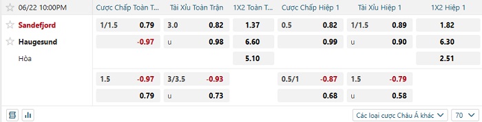 Tip kèo Châu Á full trận Sandefjord vs Haugesund