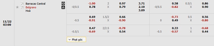 Tip kèo Châu Á full trận Barracas vs Belgrana