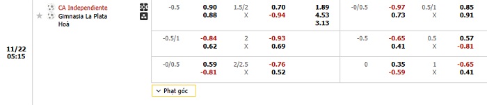 Tip kèo Châu Á hiệp 1 Independiente vs Gimnasia