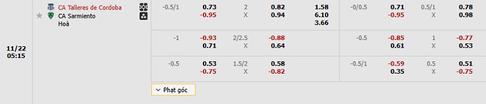Tip kèo Châu Á full trận Talleres vs Sarmiento