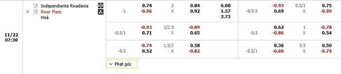 Tip kèo Châu Á full trận In. Rivadavia vs River Plate