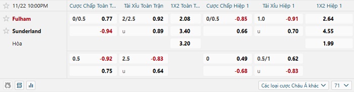 Tip kèo Châu Á full trận Fulham vs Sunderland