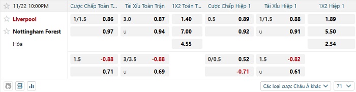 Tip kèo Châu Á hiệp 1 Liverpool vs Nottingham