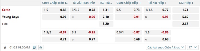 Tip kèo Châu Á full trận Celtic vs Young Boys
