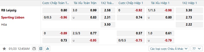 Tip kèo Châu Á full trận Leipzig vs Sporting Lisbon