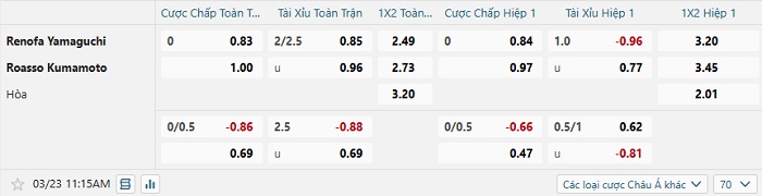 Tip kèo Châu Á hiệp 1 Renofa Yamaguchi vs Roasso Kumamoto